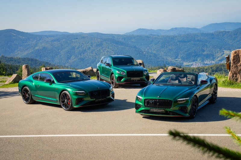 Особенное исполнение посвящено горному массиву Шварцвальд (в переводе с немецкого языка «чёрный лес»), который расположен в Германии. Британская марка Bentley, входящая в состав немецкого концерна Volkswagen, занимается разработкой и производством люксовых автомобилей. Она представила свой первый кроссовер – Bentayga – в 2015 году. Обновление эта модель пережила в 2020-м, а длиннобазная версия с прибавкой EWB присоединилась к линейке весной 2022-го. Выпуск купе Continental GT стартовал в 2003-м, позже появился вариант с открытым верхом – GTC. Актуальные двухдверки четвёртого поколения дебютировали летом 2024 года. Теперь стало известно о том, что топовые исполнения кроссовера, купе и кабриолета получат особенные версии, которые получили прибавку Black Forest к названию. Разработку и выпуск спецверсий приурочили к празднованию 15-летия Bentley Stuttgart. Новая серия Mulliner посвящена горному массиву Шварцвальд (в переводе с немецкого языка «чёрный лес») и создана на заказ в соответствии с ландшафтами местности, а также с наследием мастеров юго-западной Германии. Как рассказали в пресс-службе компании, эксклюзивная коллекция включает в себя три модели – Bentley Bentayga S Black Edition, Continental GT Speed и Continental GTC Speed, при этом каждый автомобиль «отражает суть Шварцвальда благодаря отличительному дизайну и материалам». На фото: Bentley Bentayga S Black Edition, Continental GT Speed и Continental GTC Speed в спецверсии Black Forest В списке отличительных особенностей числится цвет кузова Scarab, который призван отобразить «насыщенную зелень леса». Он подчёркнут контрастными ярко-красными вставками, которые можно увидеть на сплиттерах в нижней части переднего бампера, на корпусах боковых зеркал, а также на передних крыльях и боковых юбках у двухдверок и на подножках – у кроссовера. Интерьер перечисленных моделей отделан тёмной кожей и украшен весьма замысловатой контрастной прострочкой, которая призвана подчеркнуть ландшафт региона. Кроме того, по всему салону можно увидеть красные вставки, перекликающиеся с элементами экстерьера, а передняя панель отделана натуральным шпоном грецкого ореха. На подголовниках сидений имеется вышивка в виде зелёных листьев папоротника и красных ягод. Под капотом у посвящённой «чёрному лесу» спецверсии Bentley Bentayga S Black Edition расположен 4,0-литровый двигатель V8 с двойным турбонаддувом. Его максимальная отдача составляет 550 л.с., а крутящий момент составляет 770 Нм. На разгон с места до «сотни» этому кроссоверу, оснащённому 22-дюймовыми колёсными дисками, требуется 4,4 секунды. Особенные исполнения Continental GT Speed и GTC Speed оснащаются гибридной установкой Bentley Ultra Performance, в состав которой входит 4,0-литровый битурбомотор V8 (600 л.с.) и 190-сильный электродвигатель. Совокупная отдача этой системы – 782 л.с. (1000 Нм). На разгон от 0 до 100 км/ч у купе уходит 3,2 секунды.