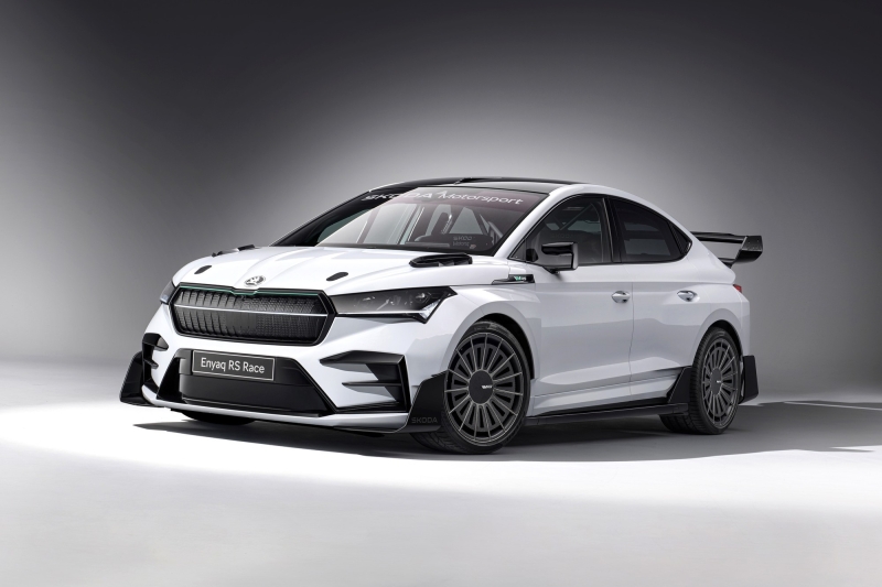 Компания Skoda показала условно раллийную версию RS Race электрического кроссовера Enyaq Coupe — пока это всего лишь концепт без конкретной цели применения, но через некоторое время он в теории может превратиться в новую дорожную топ-версию Enyaq. Подразделение Skoda Motorsport пока не собирается оправлять Enyaq Coupe на реальные соревнования — для этого у высокого и тяжёлого электрического кроссовера слишком плохие исходные данные, однако на его базе был сделан эффектный концепт-лаборатория Enyaq RS Race, на котором чешская компания решила обкатать ряд технических решений, которые могут пригодиться ей в будущем как на серийных, так и на гоночных автомобилях. За основу Skoda Enyaq RS Race взят стандартный рестайлинговый кроссовер Enyaq Coupe в двухмоторной полноприводной версии RS (vRS на британском рынке), он весит абсурдные по меркам автоспорта 2262 кг, и специалисты Skoda Motorsport бросились его максимально облегчать. Удалены шумоизоляция и все лишние детали, кузов был вскрыт, как консервная банка, после чего многие стальные детали обшивки были заменены на композитные от Bcomp, сделанные на основе экологически чистого льняного волокна AmpliTex. Из биокомпозита у концепта сделаны бамперы, крылья, крыша, новые элементы аэродинамического оперения (в том числе заднее антикрыло), передняя панель салона, дверные карты, элементы пола и пороги. Боковые и задние стёкла заменены лёгкими поликарбонатными аналогами. В результате кроссовер похудел на 316 кг до 1946 кг. Другие доработки — это расширенная колея (+72 мм спереди и +116 мм сзади), уменьшенный на 70 мм до 116 мм дорожный просвет, усиленная защита днища, затемнённая оптика, новые 20-дюймовые колёса, гоночные регулируемые амортизационные стойки в подвеске и мощные карбон-керамические тормоза с 10-поршневыми суппортами спереди и 4-поршневыми сзади. В выпотрошенном салоне установлены стальной каркас безопасности, два гоночных ковша Atech с 6-точечными ремнями безопасности, система пожаротушения, высокий рычаг гидравлического ручного тормоза и другое специфическое оборудование, позаимствованное у настоящего раллийного хэтчбека Skoda Fabia RS Rally2. Силовая установка кроссовера осталась, по сути, стандартной, два электромотора выдают совокупно 340 л.с., но благодаря «диете» время разгона до 100 км/ч уменьшилось с 5,5 до 4,6 с, максимальная скорость по-прежнему ограничена на отметке 180 км/ч. Ёмкость батареи — 82 кВт·ч, из них потребителю доступны только 77 кВт·ч. Запас хода на одной зарядке не указан, у «гражданского» кроссовера он составляет 547 км по циклу WLTP. Из концепта Skoda Enyaq RS Race вполне может в итоге творческих изысканий отдела маркетинга Skoda родиться новая дорожная топ-версия Enyaq, которая будет конкурировать на рынке с Ford Mustang Mach-E Rally, но она, разумеется, будет (если вообще будет) не такой лёгкой и внешне эффектной.