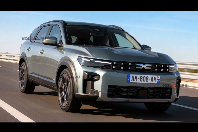Согласно рендерам, этот семейный кроссовер получит оформление экстерьера в актуальном фирменном стиле Dacia. Новинка может получить длинный покатый капот с выштамповками, оптику простой формы с полосками ходовых огней, причём фары визуально соединены друг с другом с помощью радиаторной решётки с хромированными «пикселями» и логотипом по центру.