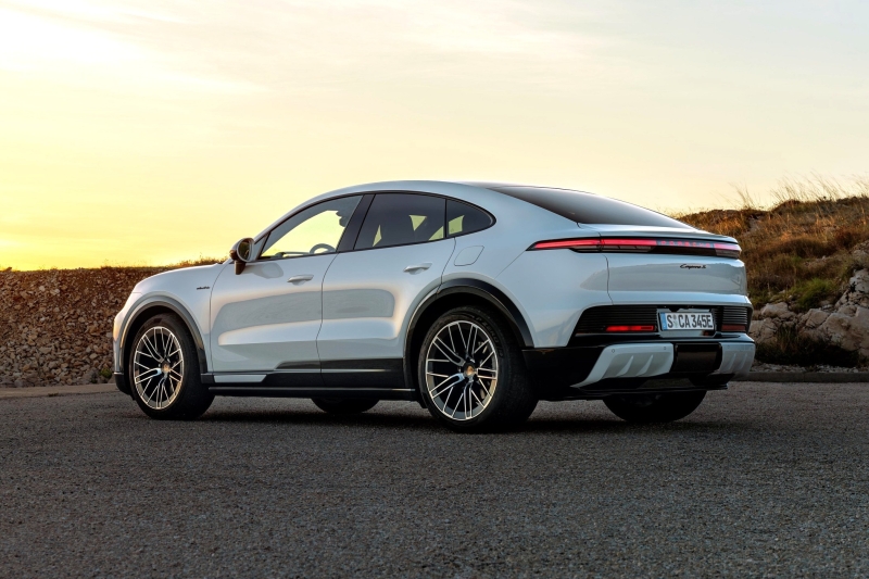 Компания Porsche представила в рамках Пекинского автосалона купеобразную версию электрического кроссовера Cayenne, у неё есть некоторые комплектационные особенности, но техника — та же самая, что у Cayenne Electric. Заказы на Porsche Cayenne Coupe Electric уже принимаются, поставки клиентам начнутся летом. Исходный Porsche Cayenne Electric на платформе PPE (Premium Platform Electric) с 800-вольтовой архитектурой справил мировую премьеру в ноябре прошлого года, тогда были представлены базовый Cayenne Electric и топовый Cayenne Turbo Electric, а в марте этого года гамму пополнил средний по оснащению и мощности Cayenne S Electric. Купеобразный Cayenne Coupe Electric дебютировал сразу в трёх версиях, точно таких же как у Cayenne Electric. Габаритная длина (4985 мм), ширина (1980 мм), колёсная база (3023 мм) и дорожный просвет (190 мм) у Cayenne Coupe Electric такие же, как у Cayenne Electric, а вот высота уменьшена с 1674 до 1650 мм, что в сочетании с покатой комой позволило снизить сх с 0,25 до 0,23. Стандартные активные аэродинамические элементы — это заслонки воздухозаборников в передке и спойлер на багажной двери, а версия Turbo дополнена подвижными боковыми планками по бокам заднего бампера — они выдвигаются на большой скорости и выравнивают воздушный поток. Улучшенные аэродинамические характеристики купеобразного кузова позволили немного увеличить запас хода на одной зарядке (цифры приведены ниже). Любопытно, что при прочих равных Cayenne Coupe Electric на 5 кг тяжелее, чем Cayenne Electric, минимальная снаряженная масса купеобразной версии — 2530 кг. На фоне такой снаряженной массы немного комично выглядит опциональный «облегчающий пакет» Lightweight Sport, в который входят углепластиковая крыша, углепластиковые детали обвеса, особые 22-дюймовые колёса и особые шины — всё это позволяет уменьшить массу аж на 17,6 кг. В стандартное оснащение Cayenne Coupe Electric входит панорамная стеклянная крыша, для которой в виде опции предлагается покрытие, способное менять степень прозрачности по секторам. Также в виде опции доступен электропривод боковых дверей. С места водителя Cayenne Coupe Electric ничем не отличается от Cayenne Electric, но пакет Sport Chrono входит в базовую комплектацию. Заднее сиденье по умолчанию двухместное, но вместо него можно выбрать диван формата 2+1 с неудобным «тёщиным местом» посередине. Запас пространства по высоте у купеобразной версии поменьше, чем у Cayenne Electric, а подушки задних сидений не регулируются в продольном направлении, можно лишь менять наклон спинок. Объём переднего багажника такой же, как у Cayenne Electric, — 90 л, а вот основной задний багажник из-за изменённой формы кормы уменьшен с 781 до 534 л (у Cayenne Turbo Coupe Electric — c 747 до 500 л). Все версии Cayenne Coupe Electric двухмоторные и полноприводные, все оснащены батареей ёмкостью 113 кВт·ч (из них потребителю доступны 108 кВт·ч), максимальная мощность зарядки — 400 кВт. Максимальная отдача силовой установки базового Cayenne Coupe Electric в режиме Launch Control — 325 кВт (442 л.с.) и 835 Нм, разгон до 100 км/ч занимает 4,8 с, максимальная скорость — 230 км/ч, максимальный запас хода на одной зарядке — 661 км по циклу WLTP (у аналогичного Cayenne Electric — 643 км). На Cayenne S Coupe Electric два электромотора выдают совокупно до 490 кВт (666 л.с.) и 1080 Нм, разгон до 100 км/ч занимает 3,8 с, максимальная скорость — 250 км/ч, максимальный запас хода на одной зарядке — 668 км по циклу WLTP (у аналогичного Cayenne S Electric — 651 км). В распоряжении топового Cayenne Turbo Coupe Electric — до 850 кВт (1156 л.с.) и 1500 Нм, разгон до 100 км/ч занимает 2,5 с, максимальная скорость