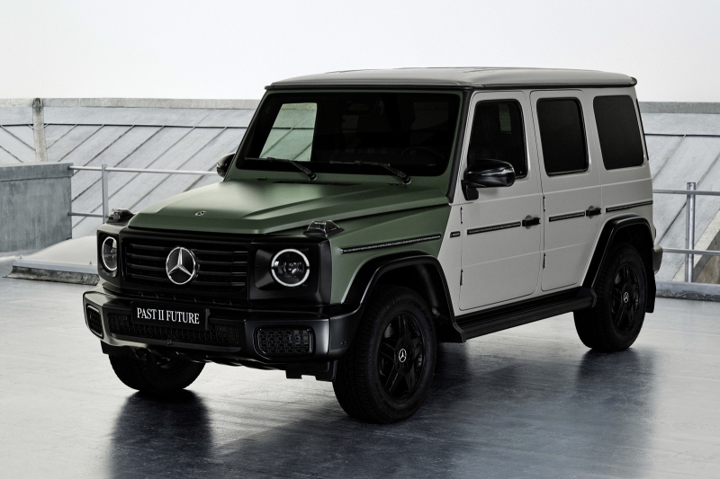 Особенное исполнение, получившее название Past II Future, выпустят лимитированным тиражом, который будет насчитывать всего 20 экземпляров. История Mercedes-Benz G-Class началась в 1979 году, внутризаводской индекс W463 модель получила в 1990 году, его же оставили масштабно модернизированной версии, которая была представлена в 2018-м. Ещё один рестайлинг нынешний Geländewagen пережил весной текущего года: внедорожнику достались скромные визуальные обновки, пересмотренный салон и электрифицированная техника без бензинового мотора V8. На фото: Mercedes-Benz G-Class Past II Future Теперь немецкий производитель рассказал о спецверсии Mercedes G-Class Past II Future, выпуск которой приурочили к 45-летию легендарной модели. В списке отличий такого варианта числится двухцветный окрас кузова: насыщенный зелёный сочетается со светло-серым оттенком и чёрной передней частью, которая включает в себя соответствующие бампер и решётку радиатора. Этот же цвет получили легкосплавные колёсные диски, накладки на колёсные арки и боковые подножки. В интерьере исполнения внедорожника, получившего название Past II Future, тоже есть свои особенности. Обивка сидений имеет рисунок в крупную клетку (отсылка к ранее выпускавшимся G-Class), а на кожаных подголовниках есть вышивка с трёхлучевой звездой и название бренда одежды Moncler (участвовал в разработке проекта наряду с японским дизайнером NIGO). Такой же рисунок можно увидеть на чехле запаски. На центральной консоли можно разглядеть надпись «one of 20» (в переводе с английского – «один из 20»), которая намекает на эксклюзивность этого Mercedes-Benz G-Class. Отметим, производитель решил выпустить лимитированную спецверсию с прибавкой Past II Future к названию тиражом всего в двадцать экземпляров. На фото: салон Mercedes-Benz G-Class Past II Future Техника у спецверсии стандартная: покупатели смогут выбрать из двух полноприводных модификаций с 3,0-литровым шестицилиндровым двигателем – либо дизельную G 450 d (мощность равна 367 л.с., а максимальный крутящий момент – 750 Нм), либо бензиновую G 500 (449 л.с. и 560 Нм). Обоим вариантам положен 48-вольтовый стартер-генератор, который кратковременно добавляет 20 л.с. и 200 Нм. В пару предлагается только девятиступенчатая автоматическая коробка передач. Цену в компании не объявляли, известно, что первые покупатели получат свои уникальные внедорожники в апреле следующего года. Напомним, на домашнем рынке в Германии, за «обычную» базовую дизельную версию сейчас просят не менее 122 808 евро (эквивалентно примерно 12,83 млн рублей по текущему курсу), а за бензиновый вариант придётся заплатить не менее 132 328 евро (около 13,83 млн рублей). У Geländewagen сейчас есть полностью «зелёная» версия, которая дебютировала минувшей весной под названием Mercedes-Benz G 580 with EQ Technology, тогда как у концепта было название EQG. Сейчас на официальном сайте «электричка» обозначена просто как G‑Klasse с соответствующей «начинке» плашкой рядом. Стоимость этой модификации стартует с отметки 142 621 евро (около 14,9 млн рублей).