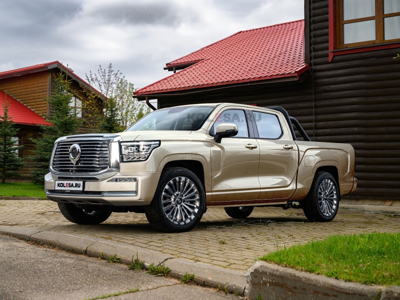 Месяц назад мы представляли, как выглядел бы большой внедорожник Haval H5 последнего поколения в премиальном исполнении, а сегодня на очереди — его соплатформенник, пикап Great Wall KingKong Poer. Самый большой пикап от китайской компании Great Wall дебютировал в конце 2021 года, а в 2023 году модель добралась до России под именем Poer KingKong. Кстати, тогда же мы провели тест-драйв новинки. Несмотря на внушительные размеры, этот пикап имеет весьма простую отделку как внешности, так и интерьера. Мы решили изобразить его премиальную версию, воспользовавшись внешним сходством с родственным по компании Great Wall Motor внедорожником Tank 500, который позиционируется как самый настоящий премиум. Стандартный Great Wall Poer KingKong Стандартный Great Wall Poer KingKong Стандартный Great Wall Poer KingKong У них очень схожие очертания передней части, форма фар и решётки, при этом начинка оптики более простая, а решётка радиатора выкрашена в неприметный чёрный цвет. Представленный на рендерах пикап получил полностью светодиодную линзованную оптику и хромированную решётку с более богатой отделкой, а также новый передний бампер. Заметным отличием от стандартного Poer KingKong стали многоспицевые хромированные колёсные диски большего диаметра, позаимствованные у Tank. Что же касается задней части, то здесь появились новые фонари с хромированной окантовкой, а также широкий хромированный молдинг на заднем борту. Кроме того, пикап изображён в фирменном бежевом цвете внедорожника Tank 500. Рендер Great Wall Poer KingKong в премиальном стиле Пикап Poer KingKong имеет рамную конструкцию и рессорную заднюю подвеску. По сложившейся в США классификации его можно отнести к полноразмерным: к таковым причисляют модели с колёсной базой от 3000 до 3800 мм (у KingKong 3410 мм) и длиной от 5100 до 6000 мм (у KingKong она составляет 6000 мм). Пикап поставляется в Россию с двумя моторами — двухлитровым бензиновым турбомотором GW4C20B мощностью 190 л.с. (хорошо знакомым по таким моделям, как Haval F7 и F7x) и двухлитровым турбодизелем GW4D20M мощностью 150 л.с. Рендер Great Wall Poer KingKong в премиальном стиле Оба варианта имеют одинаковый ценник: базовая комплектация Comfort оценивается минимум в 2 999 000 рублей, более богатая версия Elite — от 3 199 000 рублей. Все модификации оснащены полным приводом и 6-ступенчатой механической коробкой передач. Между тем, чуть более месяца назад на рынок вышел мотоцикл от Great Wall с мотором V8.